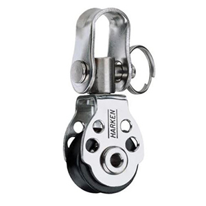 The 16 mm is the smallest block by Harken and is ideally suited for small synthetic control lines found on high-tech dinghies. Stainless steel balls in a captive grooved race and has a 250 lb (113 kg) maximum working load. 16mm sheave for use with 5mm line.